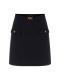 Realizzata in un elegante nero intramontabile, questa gonna corta si distingue per il dettaglio della cintura con fibbia logata in metallo dorato e per le tasche laterali con bottone, che aggiungono un tocco sofisticato e contemporaneo.