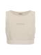 Maglia in stile cropped realizzato in morbido nylon che lo rende un capo pratico e comodo da indossare, il tutto su una struttura totalmente a tinta unita, decorata unicamente da lettering del brand nella parte centrale cucita tono su tono.