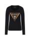 Modello girocollo a maniche lunghe, con orlo sul fondo, sulle maniche e sul colletto. Maglia a tinta unita decorata unicamente da logo "Animal Triangle" a contrasto di colore con lettering del brand e strass.